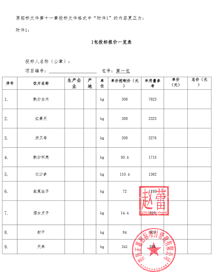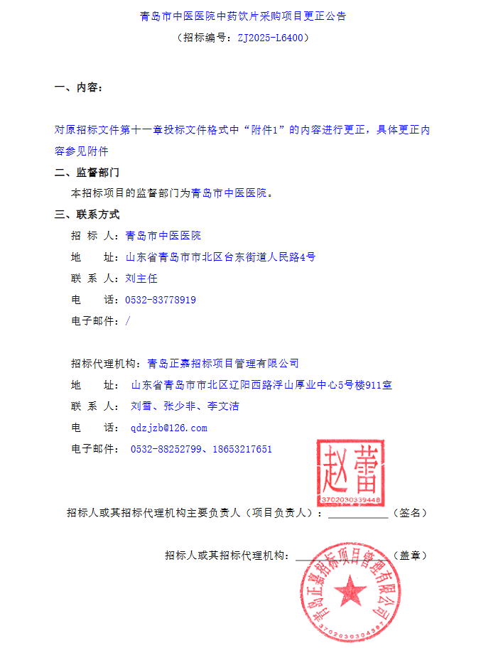 【青岛市中医医院】山东省青岛市中医医院中药饮片采购项目更正公告