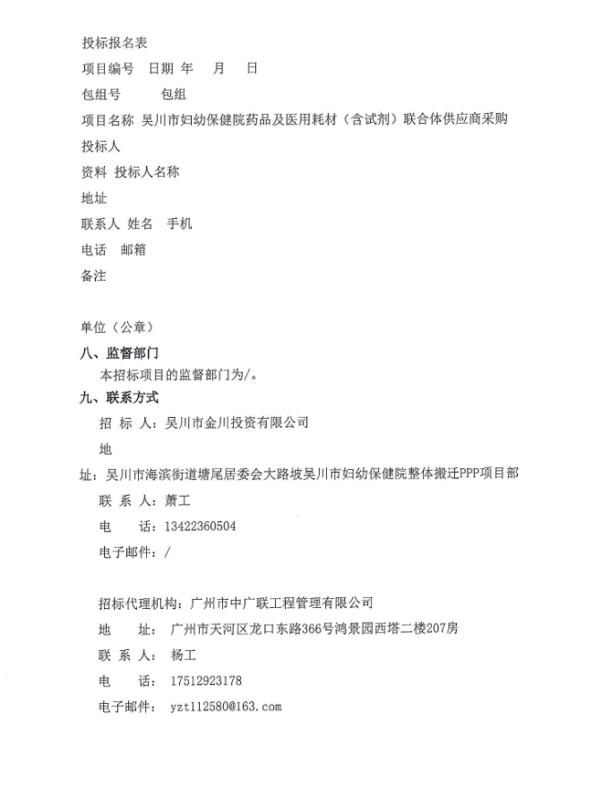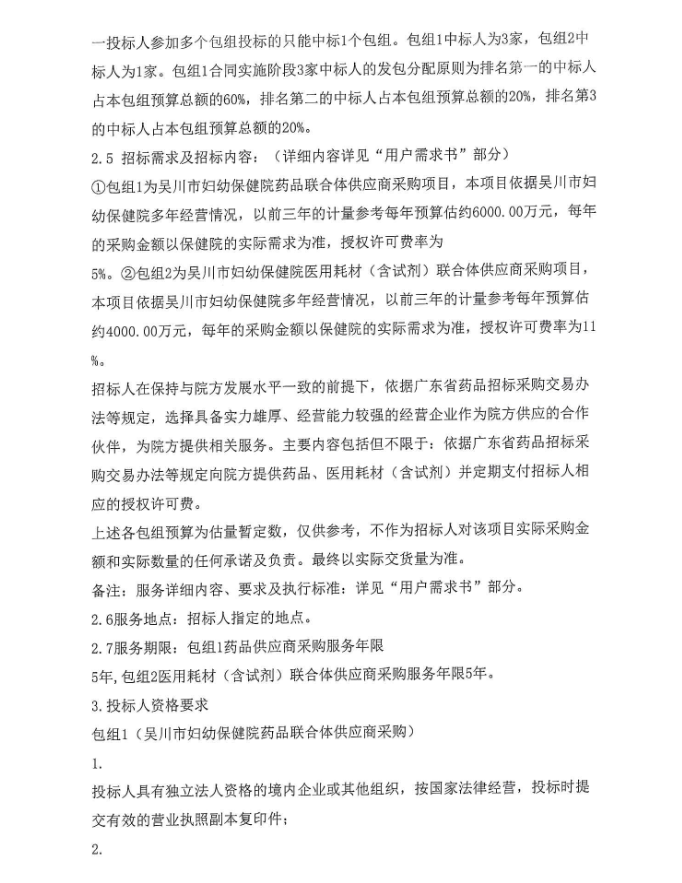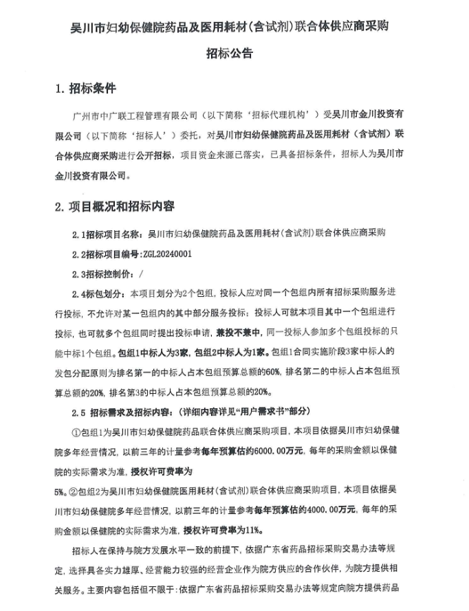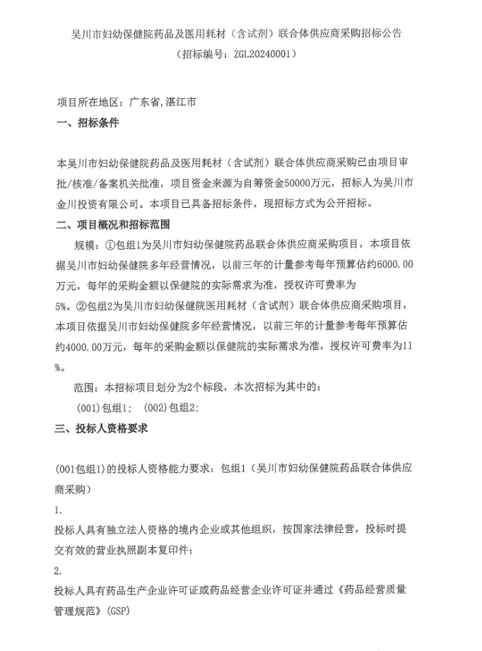 【湛江市吴川市妇幼保健院】广东省湛江市吴川市妇幼保健院药品及医用耗材(含试剂)联合体供应商采购招标公告