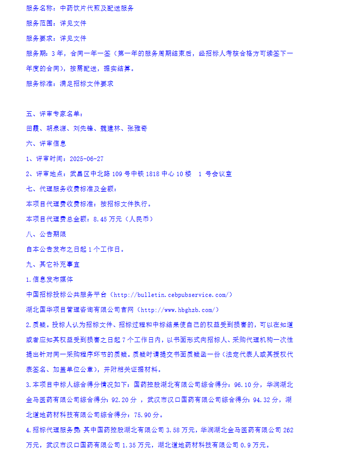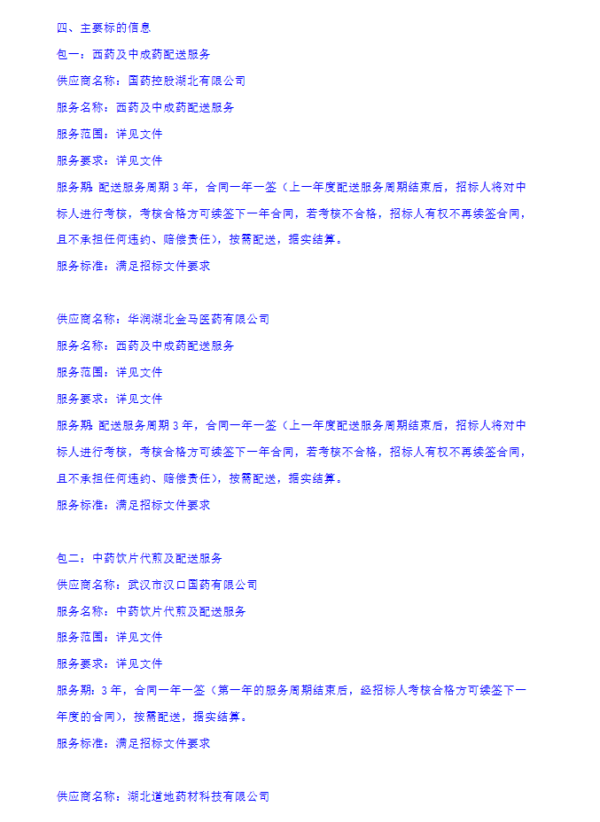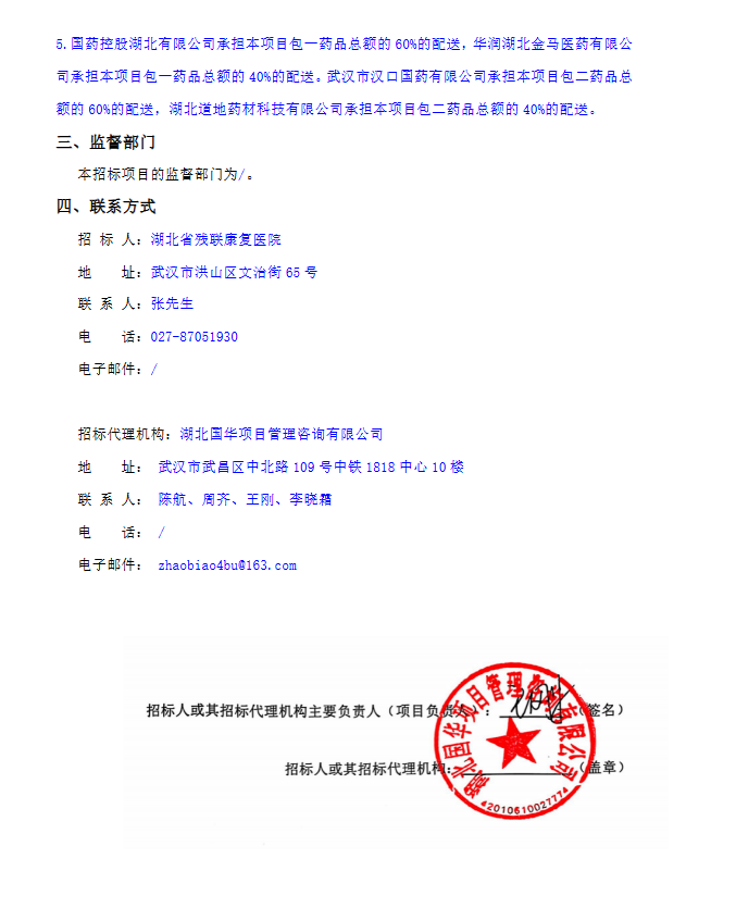 【湖北省残联康复医院】湖北省残联康复医院药品配送服务项目中标公告(20250704)