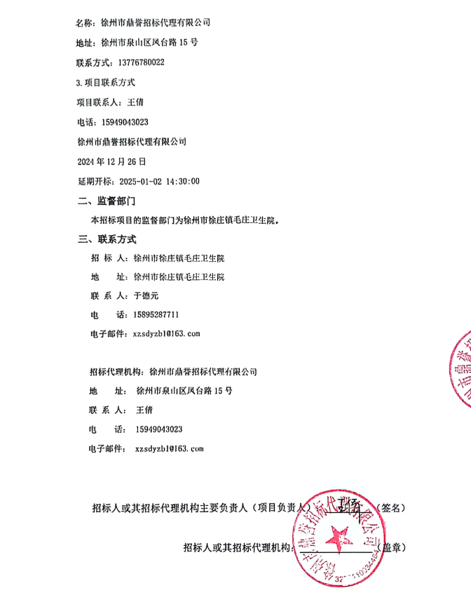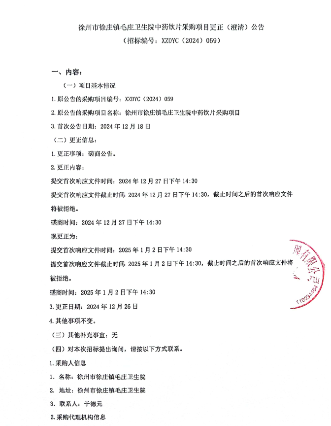 【徐州市徐庄镇毛庄卫生院】江苏省徐州市徐庄镇毛庄卫生院中药饮片采购项目更正(澄清)公告