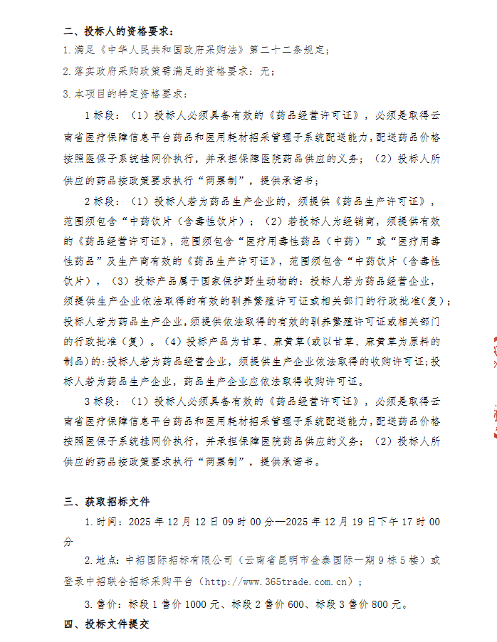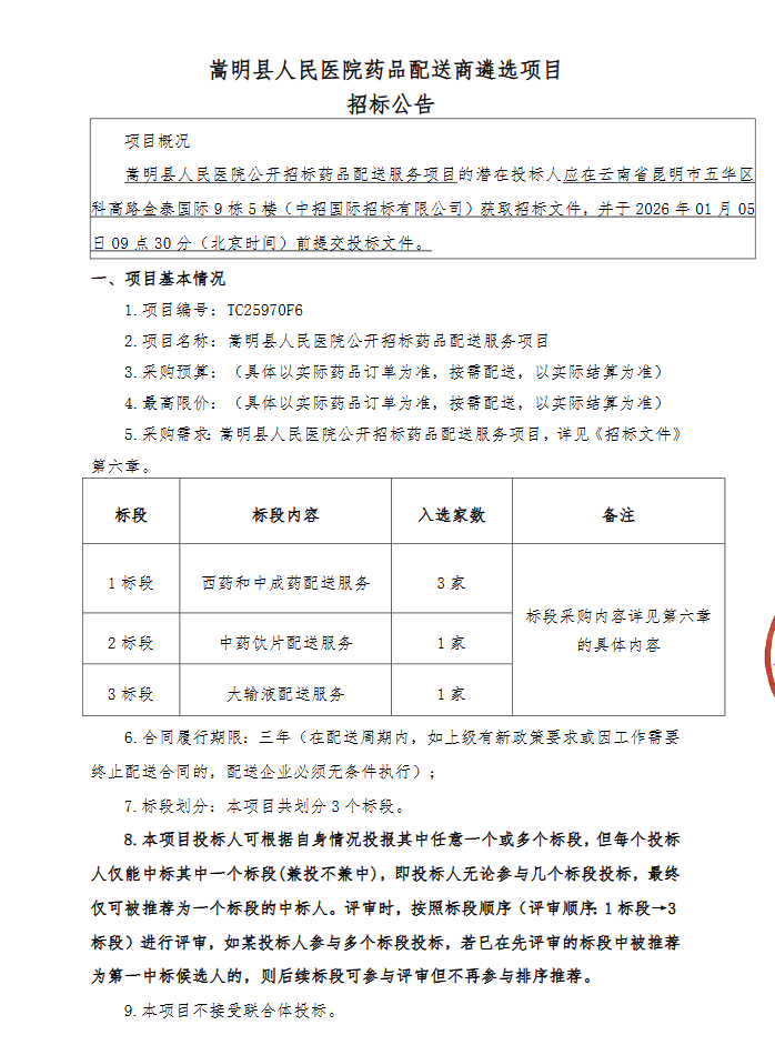 【昆明市嵩明县人民医院】云南省昆明市嵩明县人民医院药品配送商遴选项目-招标公告