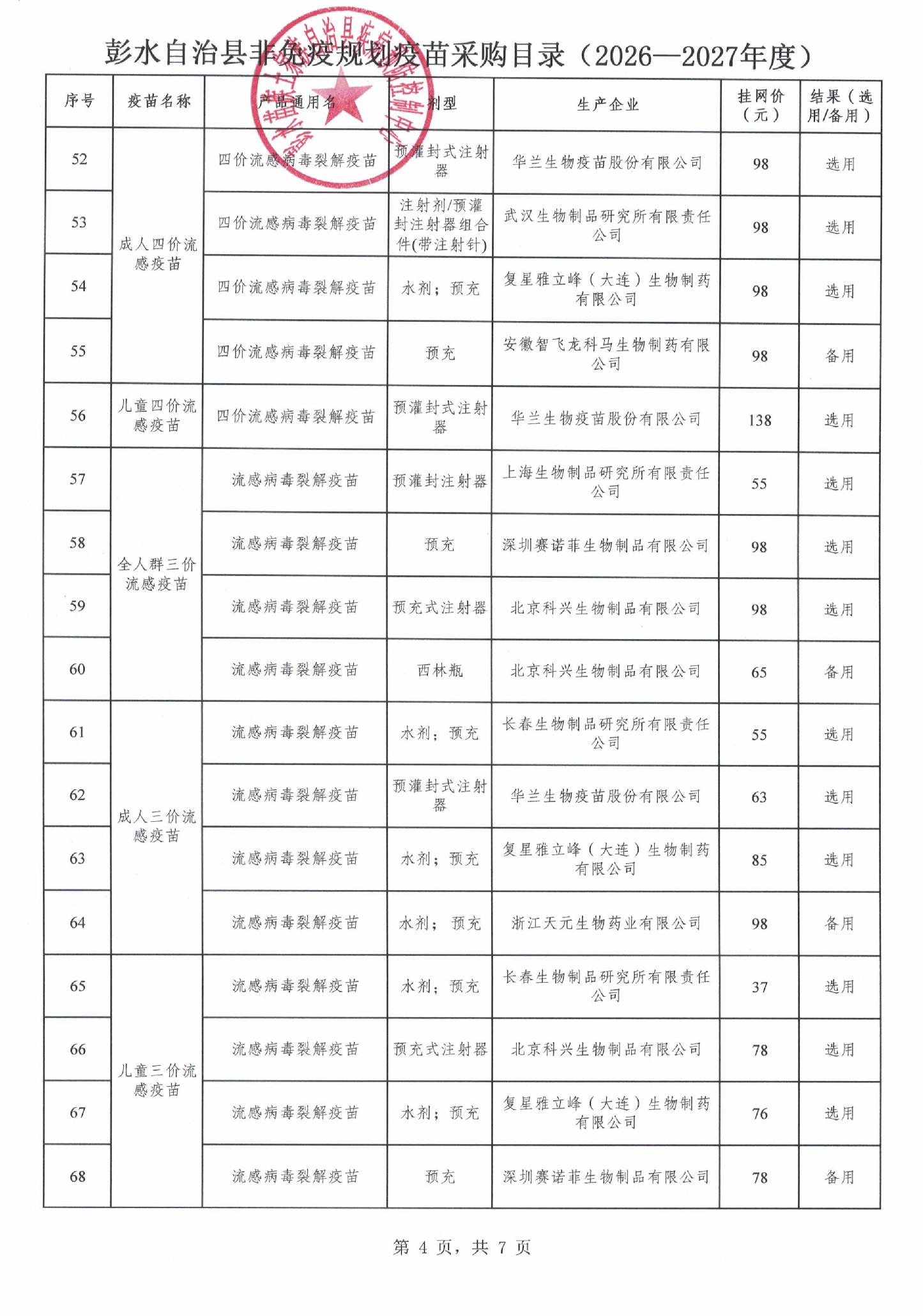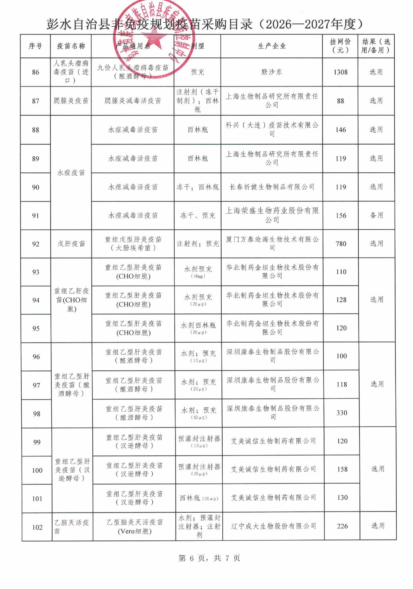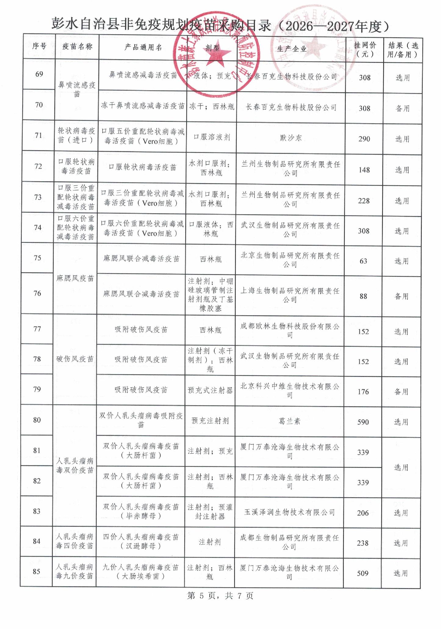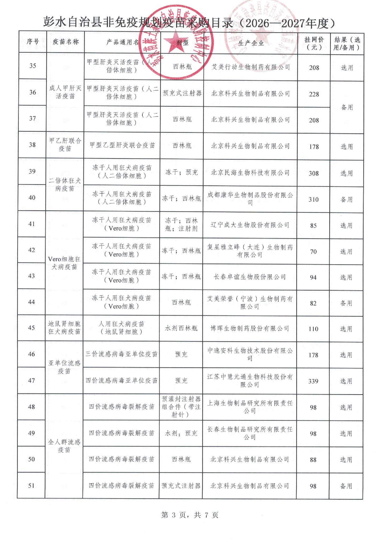 【重庆】彭水自治县非免疫规划疫苗遴选结果的公示(2026-2027年度)