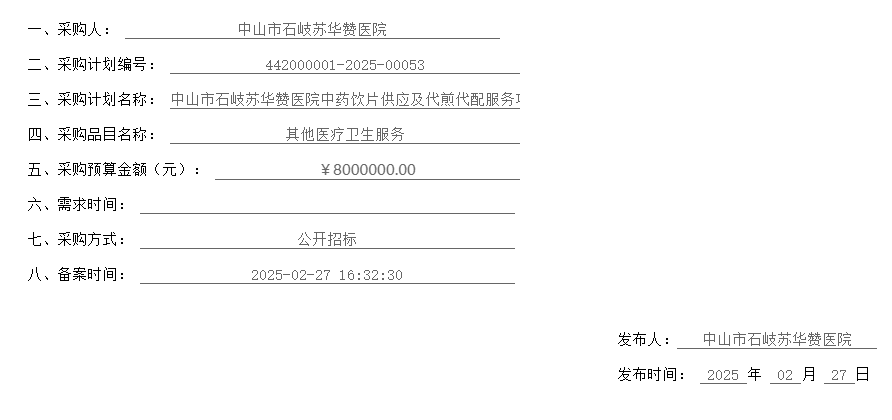 【中山市石岐苏华赞医院】广东省中山市石岐苏华赞医院中药饮片供应及代煎代配服务项目