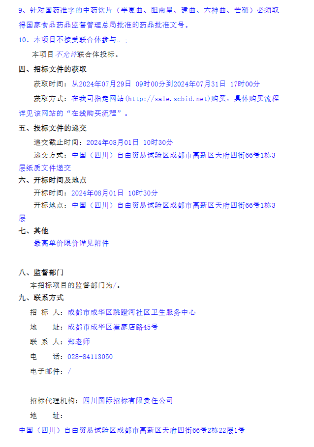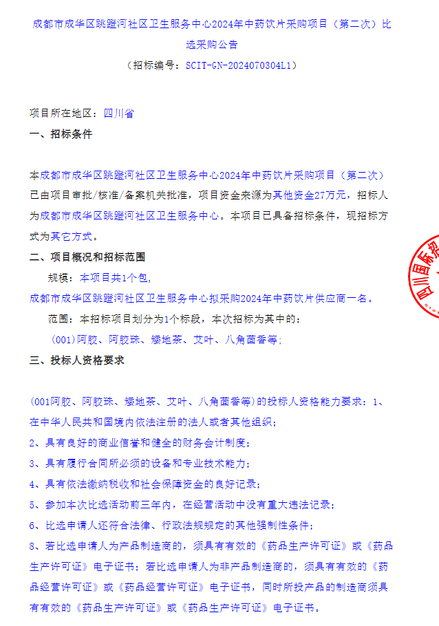 【成都市成华区跳蹬河社区卫生服务中心】四川省成都市成华区跳蹬河社区卫生服务中心2024年中药饮片采购项目(第二次)比选采购公告