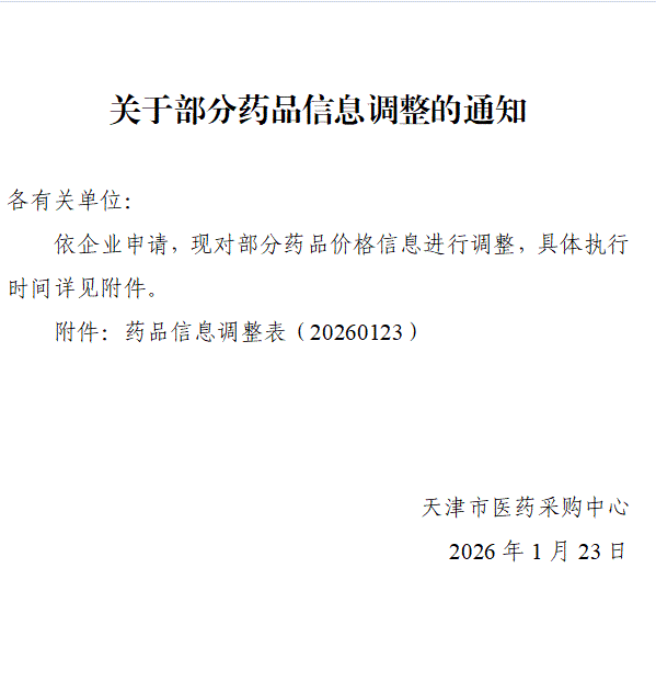 【天津】天津市关于部分药品信息调整的通知(20260123)