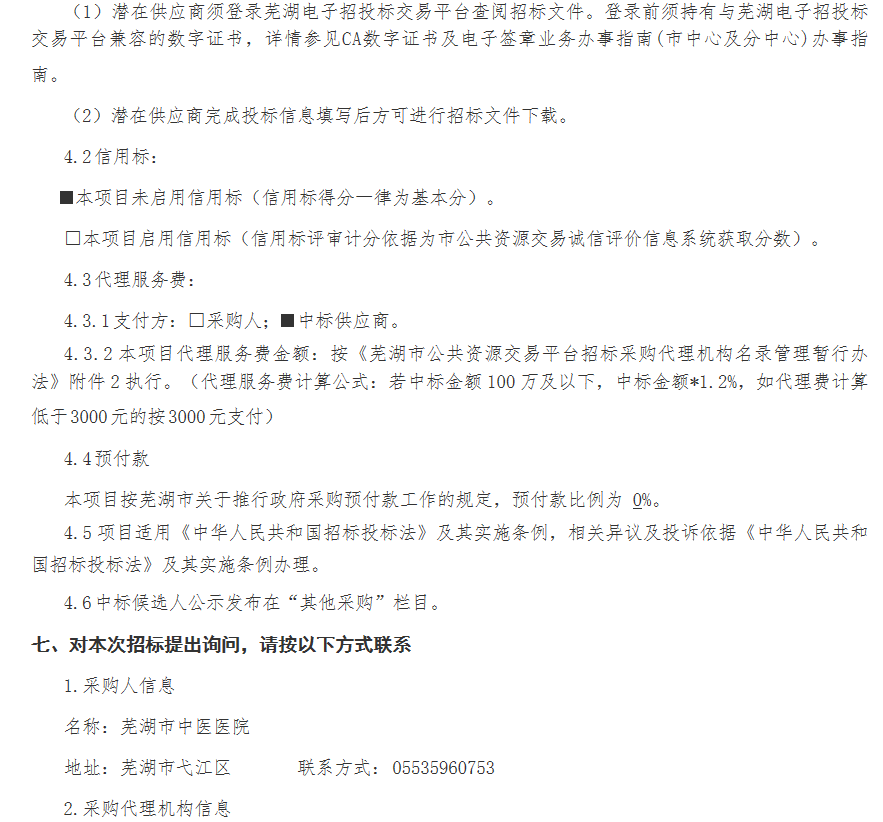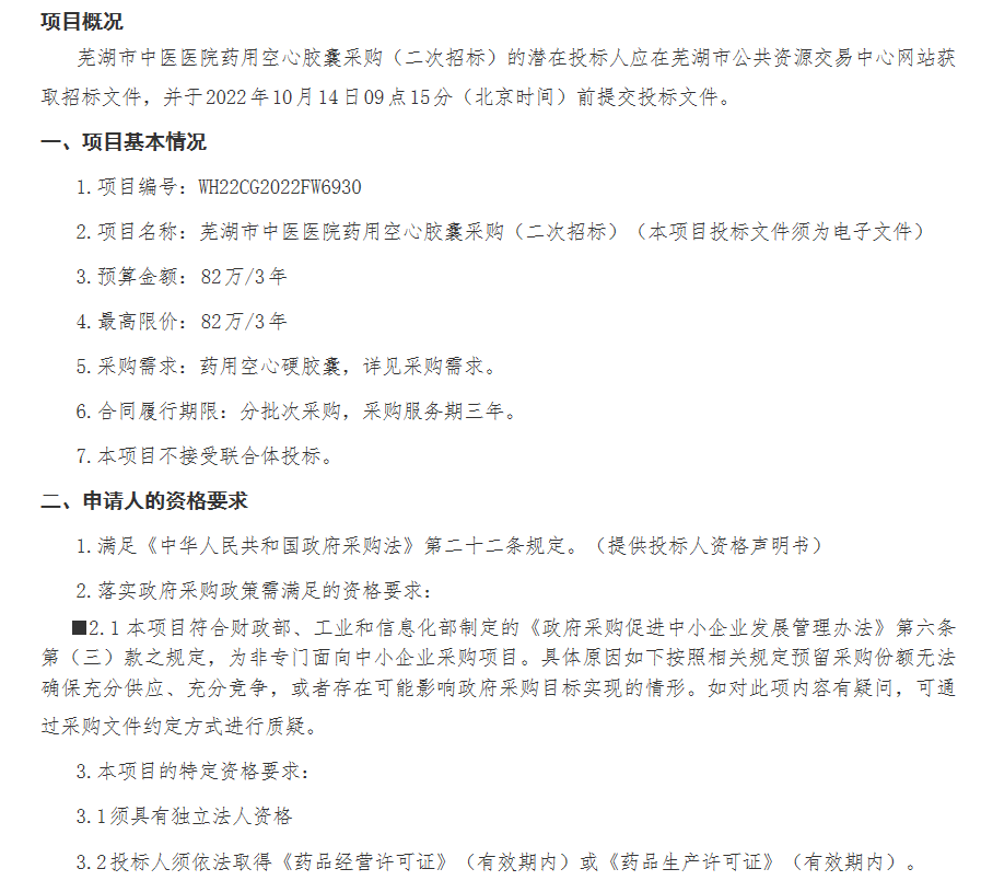 【安徽省芜湖市中医医院】药用空心胶囊采购(二次招标)项目公开招标公告