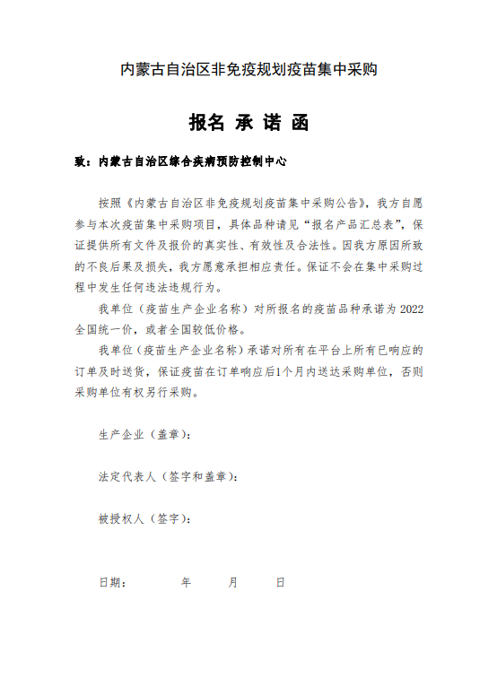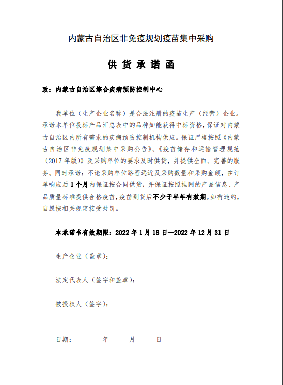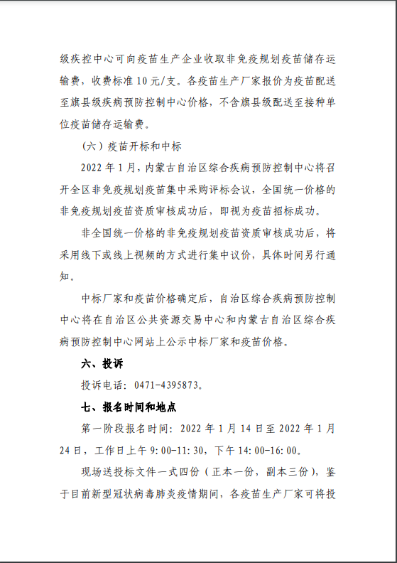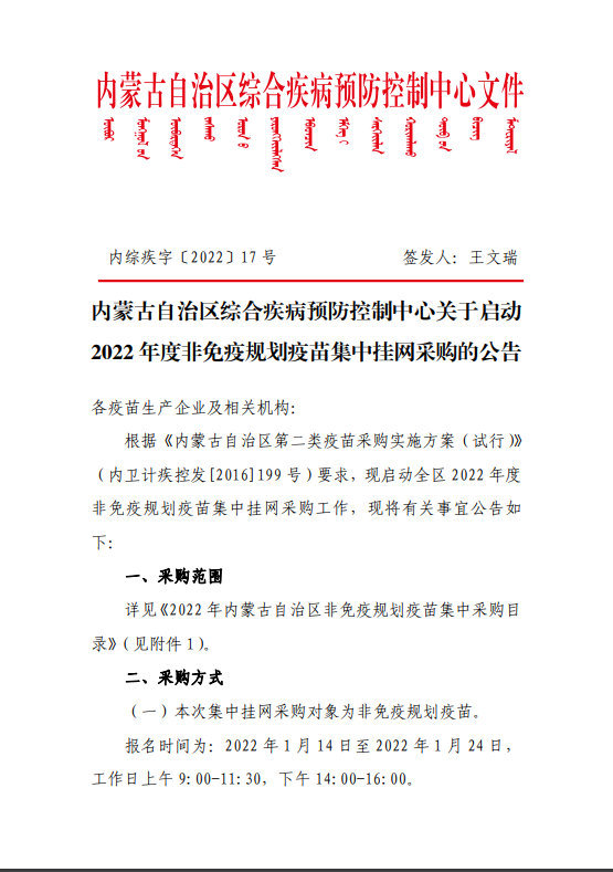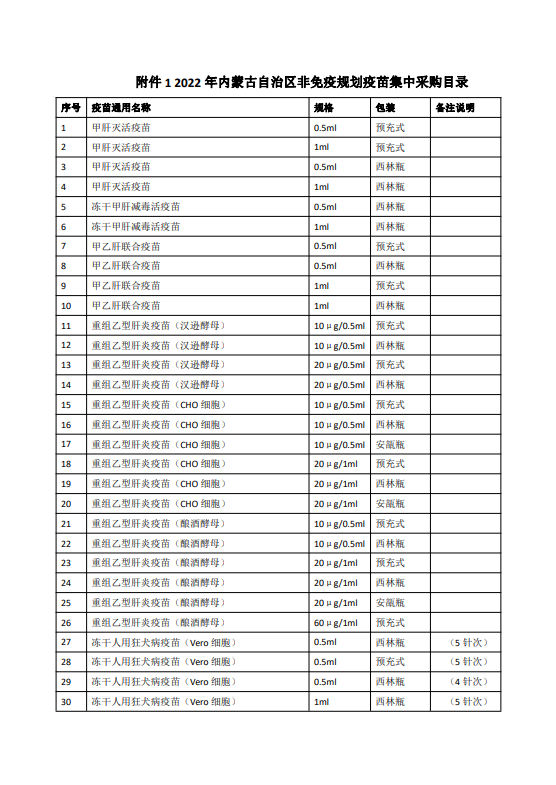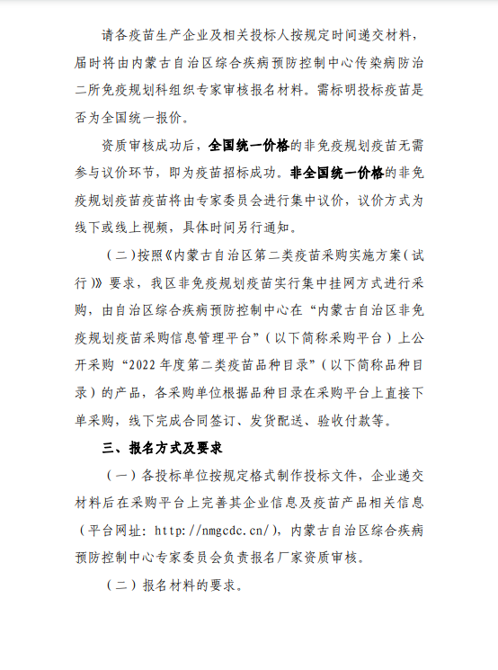 【内蒙】2022年内蒙古自治区非免疫规划疫苗集中挂网采购项目