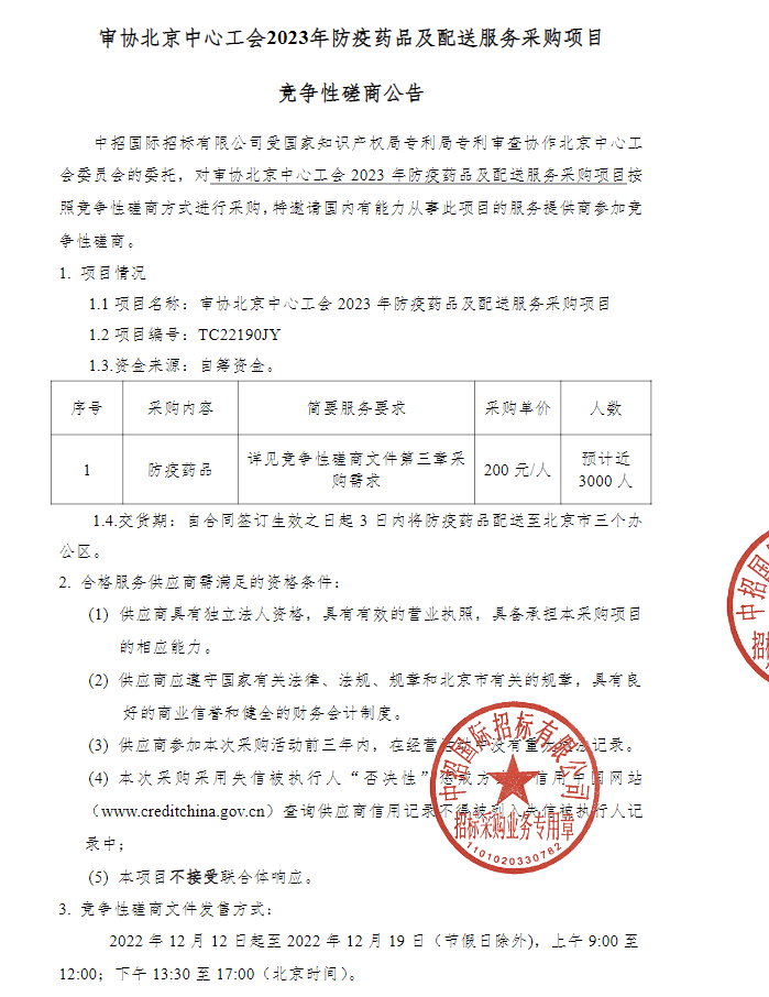 【北京市审协北京中心工会】北京市审协北京中心工会2023年防疫药品及配送服务采购项目-竞争性磋商公告