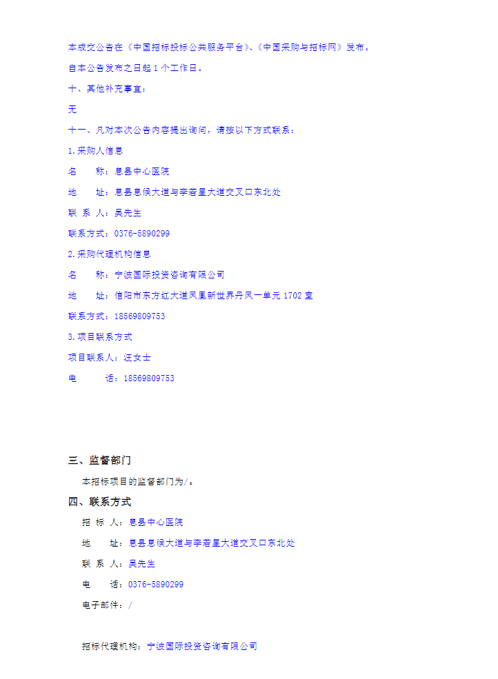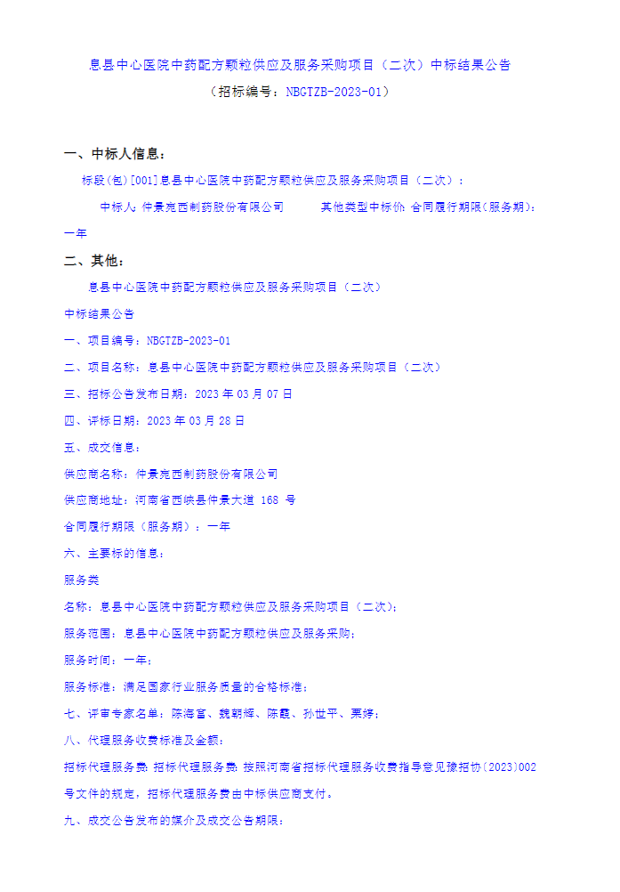 【信阳市息县中心医院】河南省信阳市息县中心医院中药配方颗粒供应及服务采购项目(二次)中标结果公告