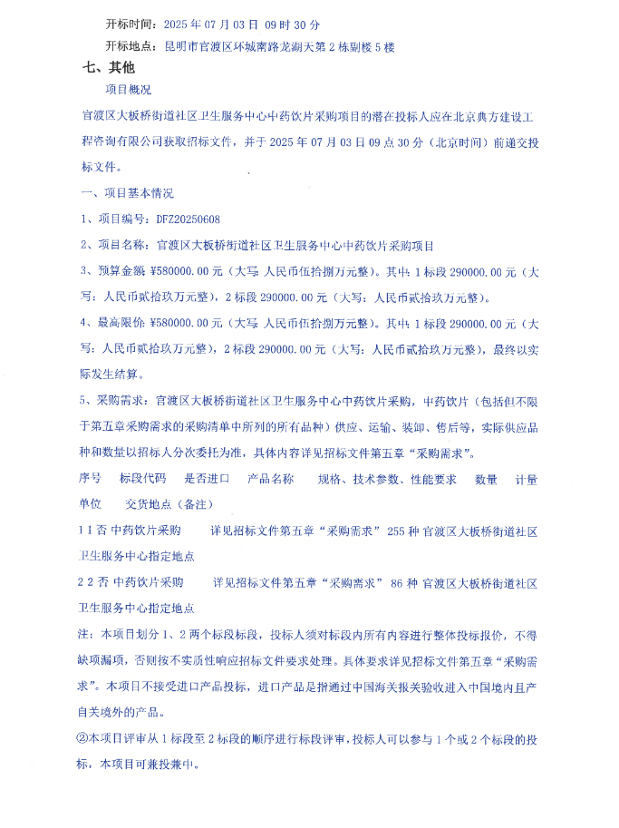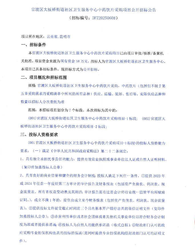 【昆明市官渡区大板桥街道社区卫生服务中心】云南省昆明市官渡区大板桥街道社区卫生服务中心中药饮片采购项目公开招标公告