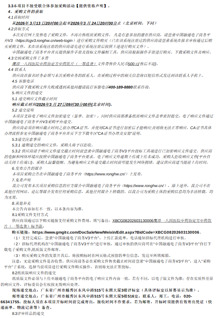 【鹰潭一八四医院】江西省鹰潭一八四医院中药协定方中药饮片(一等选货)询比采购公告