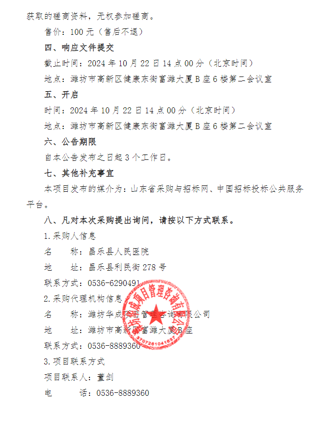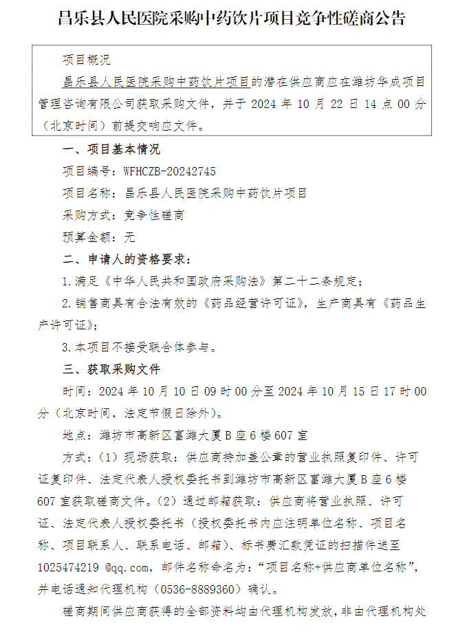 【潍坊市昌乐县人民医院】山东省潍坊市昌乐县人民医院采购中药饮片项目竞争性磋商公告