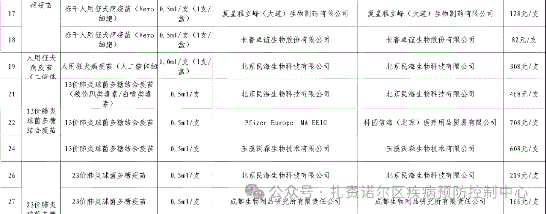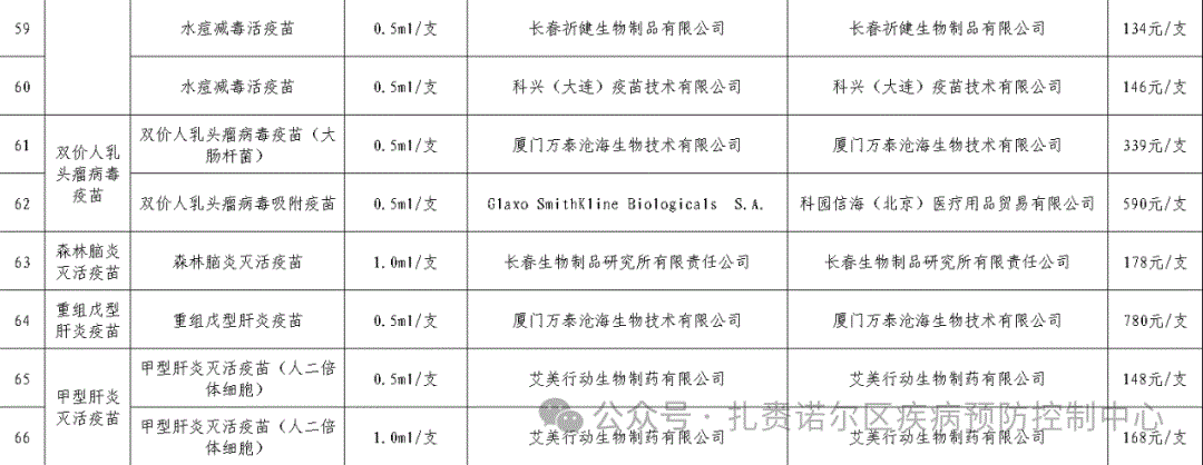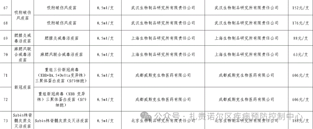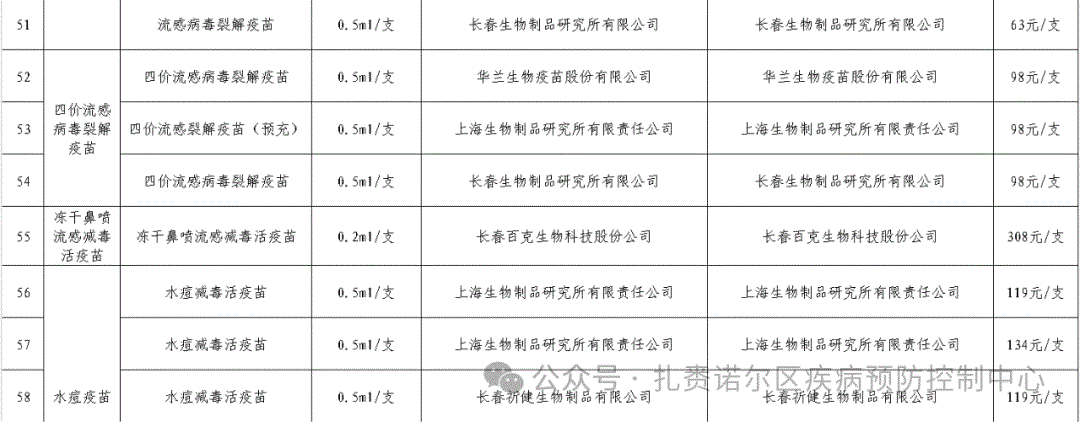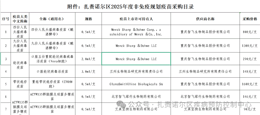附件:扎赉诺尔区2025年度非免疫规划疫苗采购目录图片