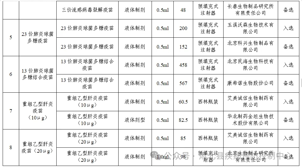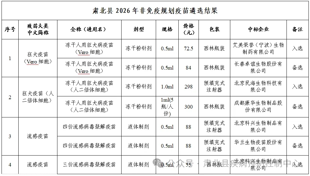 【酒泉】肃北县2026年非免疫规划疫苗遴选结果公示