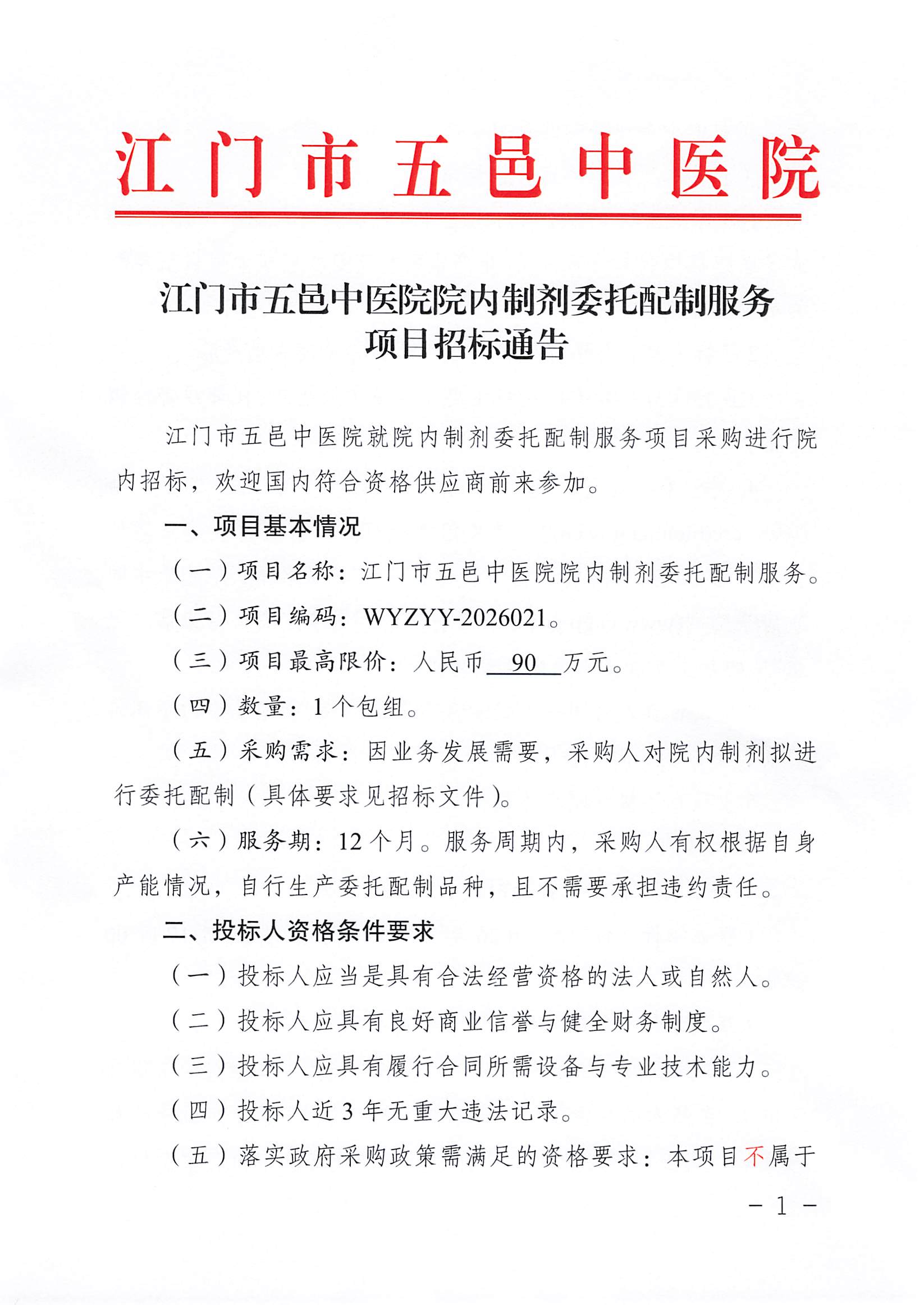 【江门市五邑中医院】广东省江门市五邑中医院院内制剂委托配制服务项目招标通告