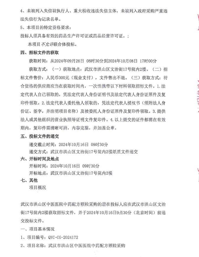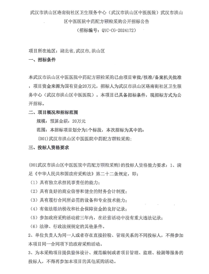 【武汉市洪山区珞南街社区卫生服务中心】湖北省武汉市洪山区珞南街社区卫生服务中心(武汉市洪山区中医医院)武汉市洪山区中医医院中药配方颗粒采购公开招标公告
