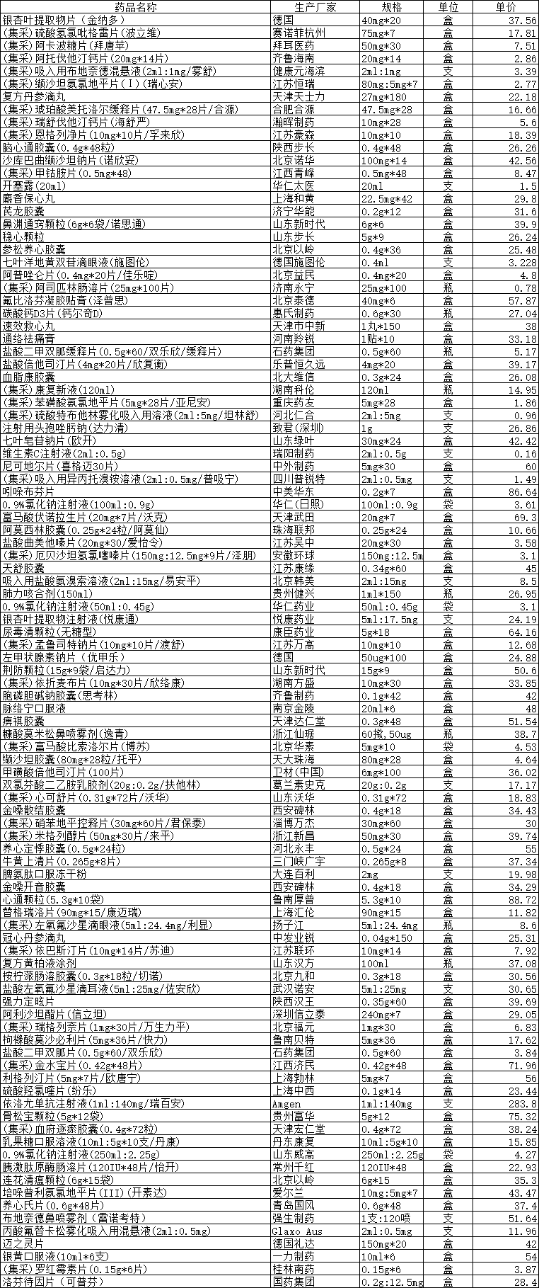 【山东省第二人民医院】山东省第二人民医院常用药品价格公示