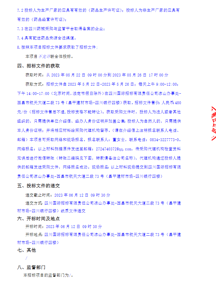 【昭觉县人民医院】四川省凉山彝族自治州昭觉县人民医院药品配送服务商遴选项目公开招标采购公告