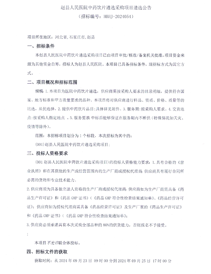 【石家庄市赵县人民医院】河北省石家庄市赵县人民医院中药饮片遴选采购项目遴选公告