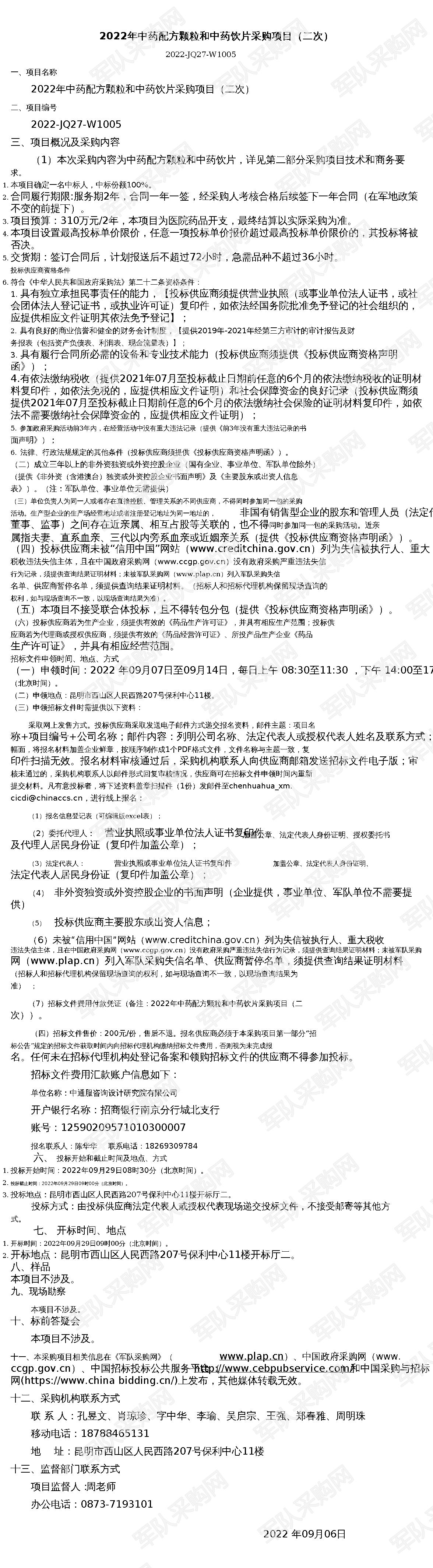 【军队采购网】2022年中药配方颗粒和中药饮片采购项目(二次)+2022-JQ27-W1005