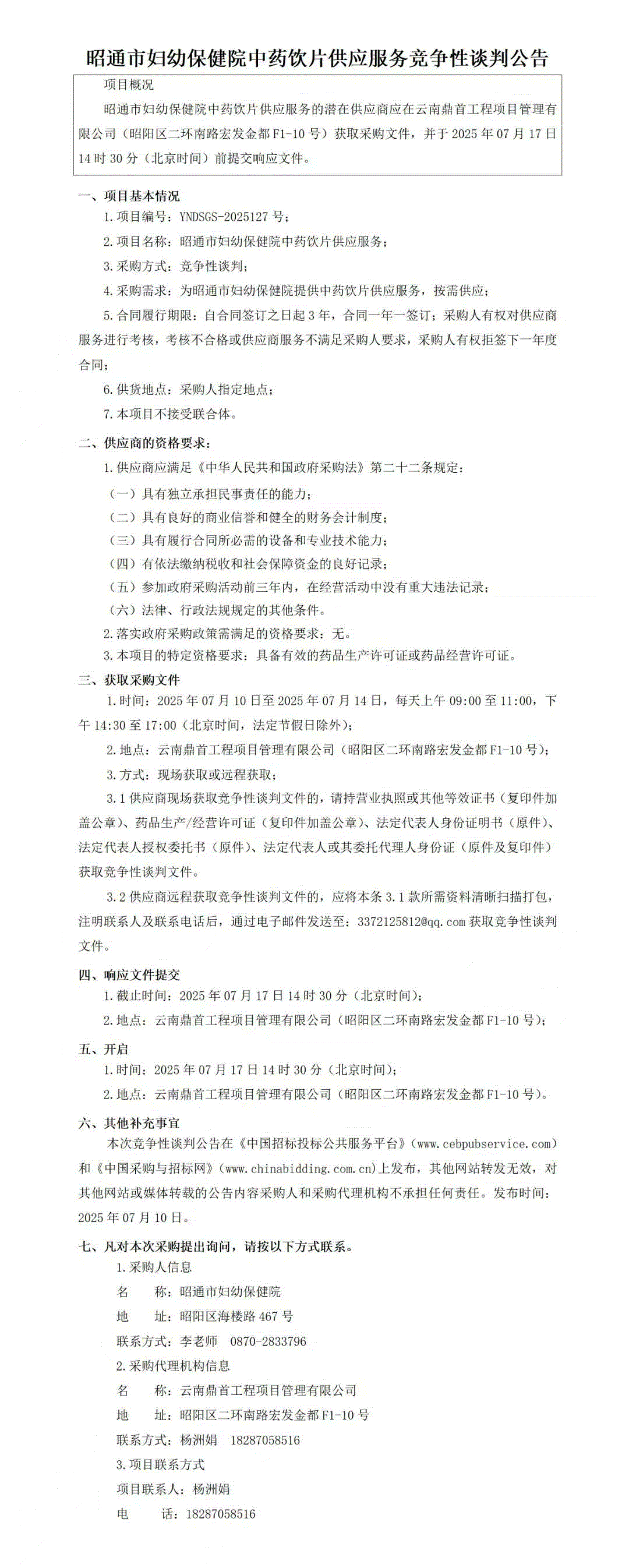 【昭通市妇幼保健院】云南省昭通市妇幼保健院中药饮片供应服务竞争性谈判公告
