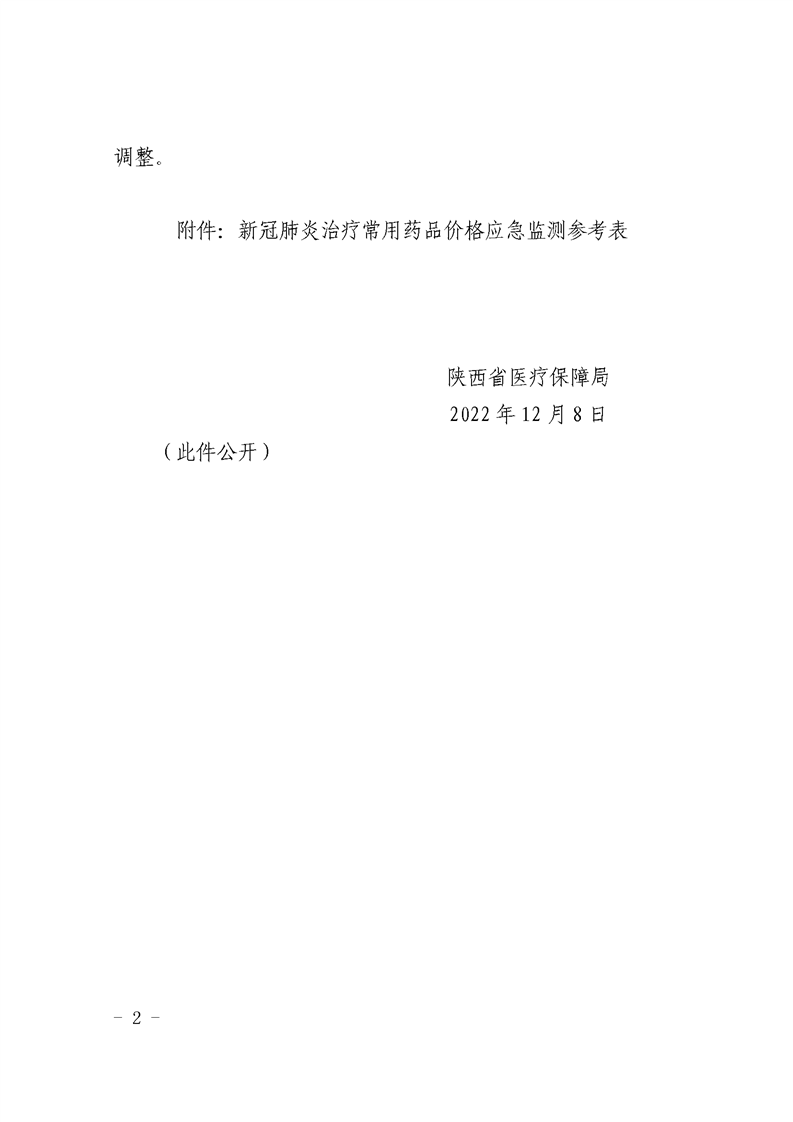 【陕西】陕西省医疗保障局关于启动新冠肺炎治疗相关药品价格应急监测的通知