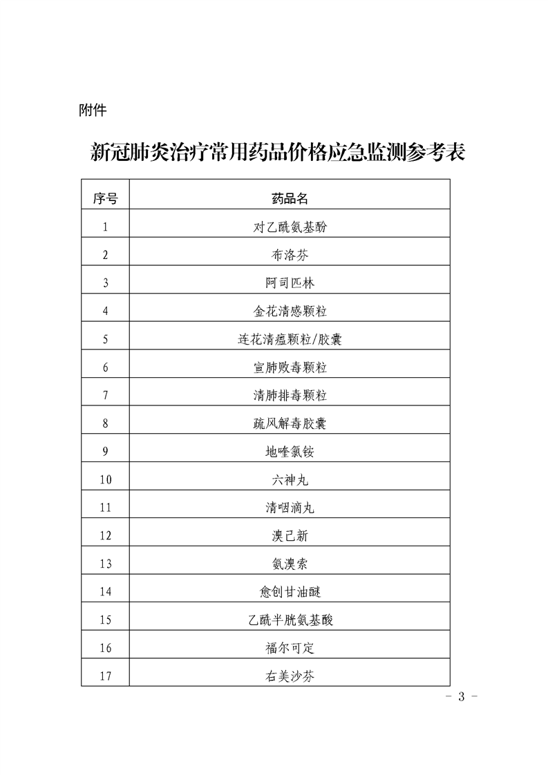 新冠肺炎治疗常用药品价格应急监测参考表