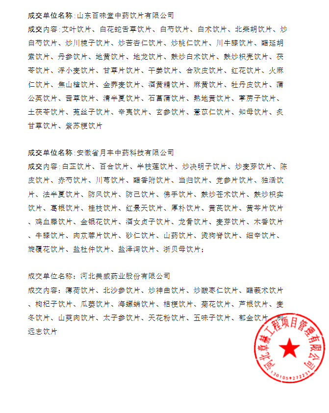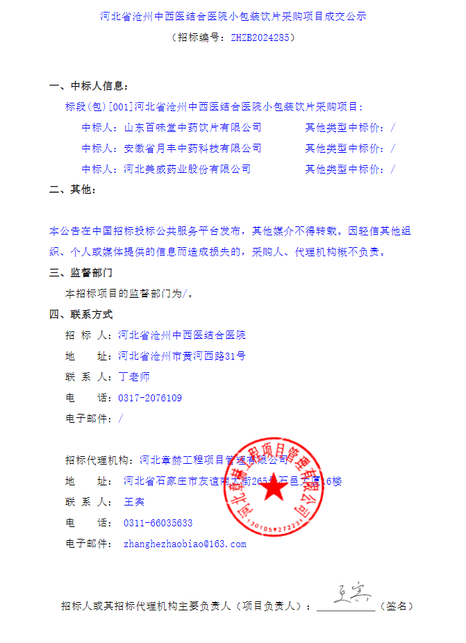 【沧州中西医结合医院】河北省沧州中西医结合医院小包装饮片采购项目成交公示