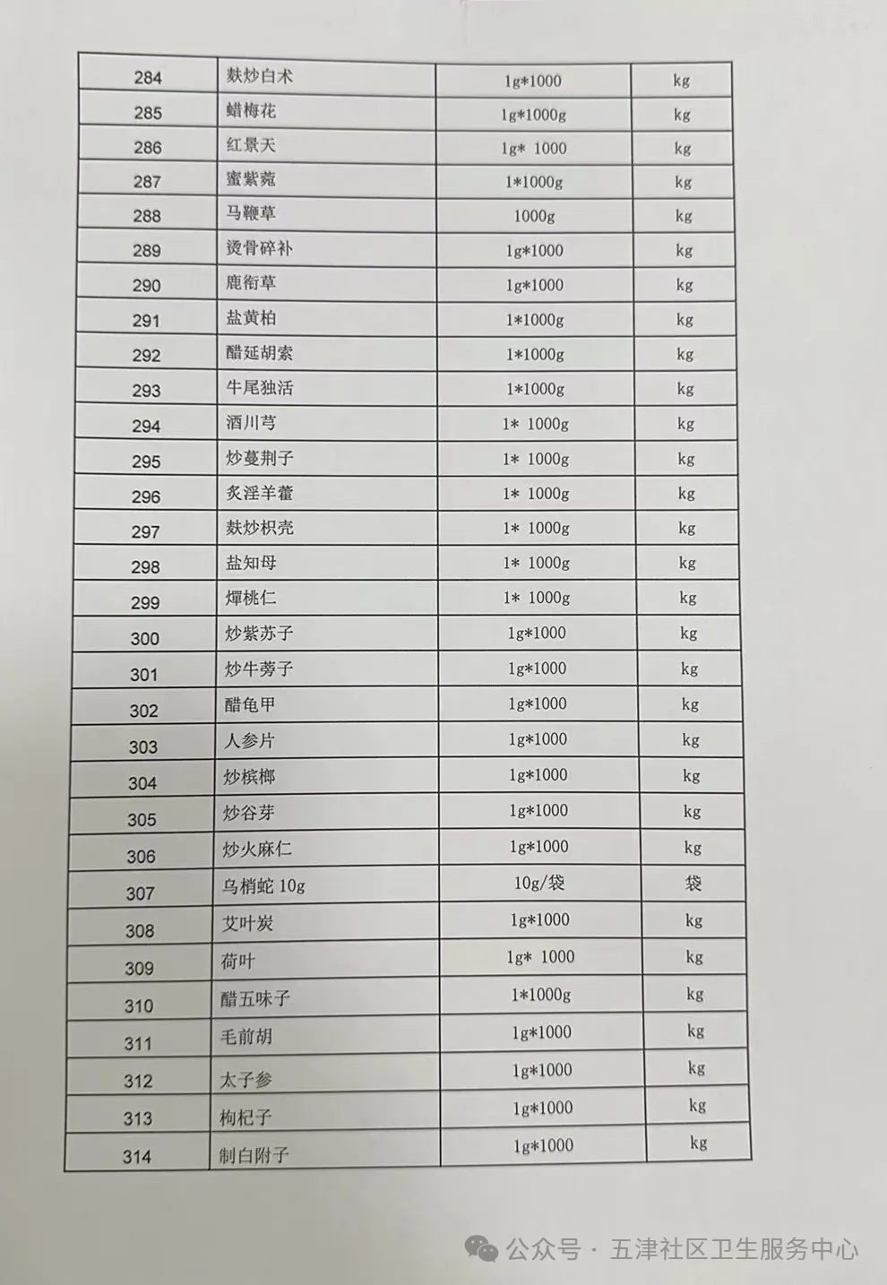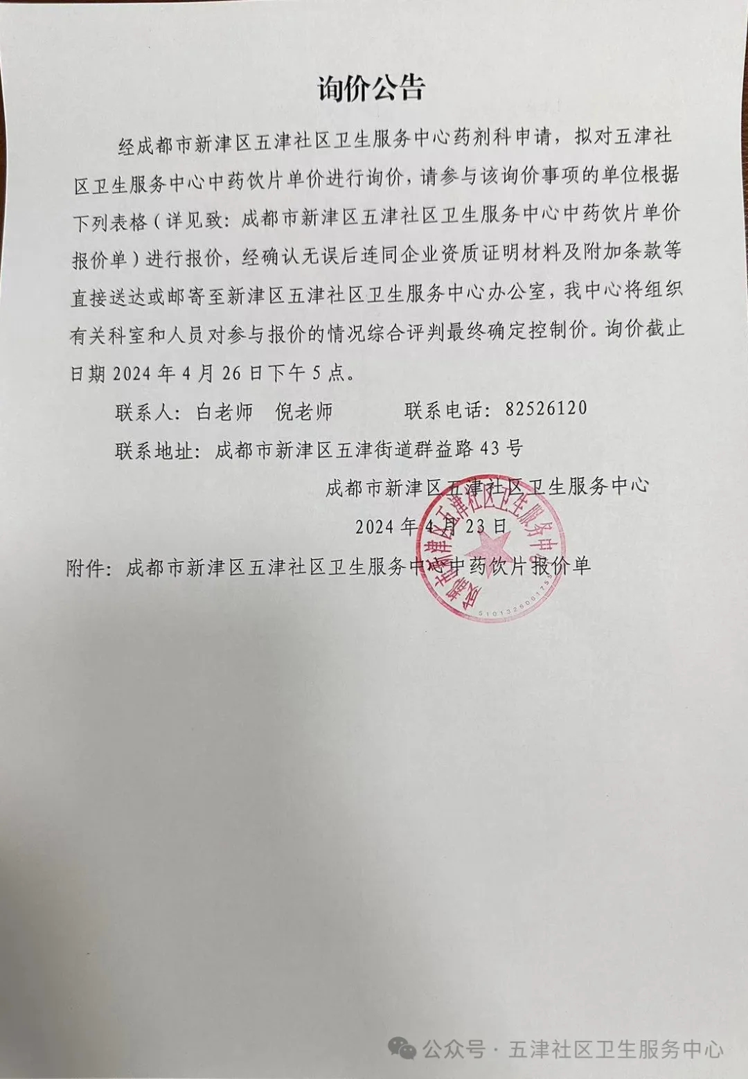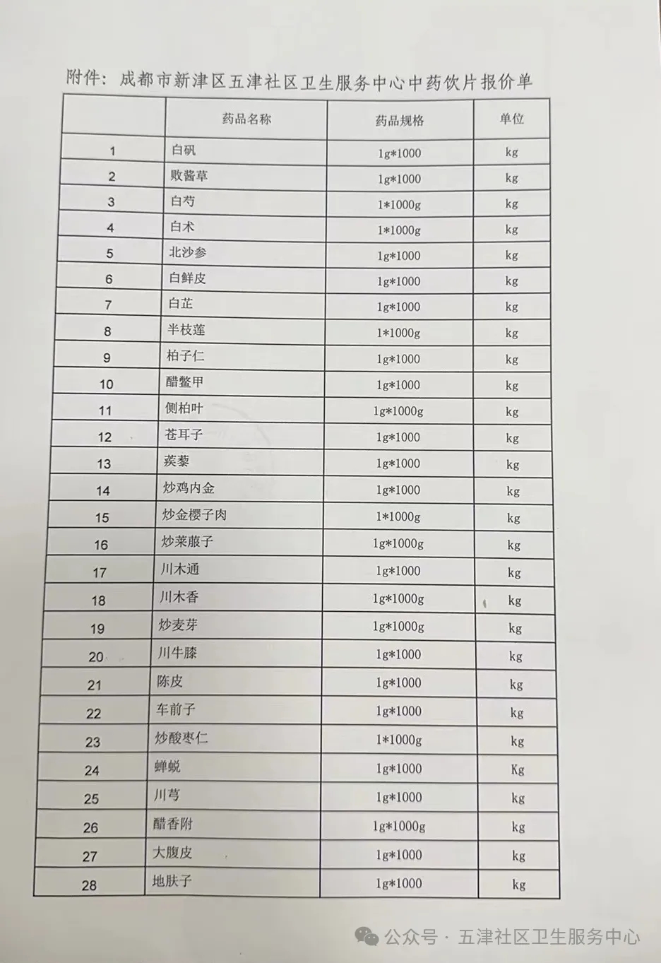 【成都市新津区五津社区卫生服务中心】四川省成都市新津区五津社区卫生服务中心中药饮片单价询价公告