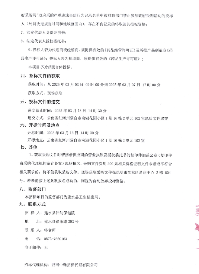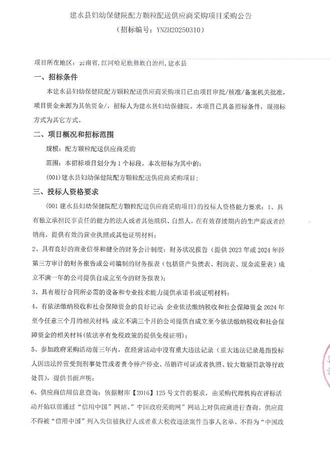 【红河哈尼族彝族自治州建水县妇幼保健院】云南省红河哈尼族彝族自治州建水县妇幼保健院配方颗粒配送供应商采购项目采购公告