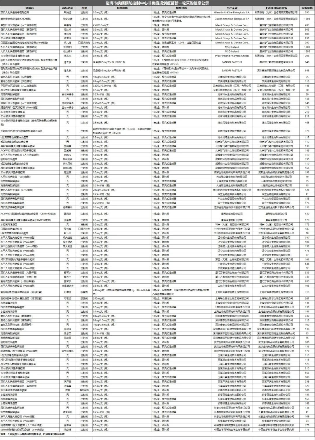 【聊城】临清市疾病预防控制中心非免疫规划疫苗新一轮采购信息公示