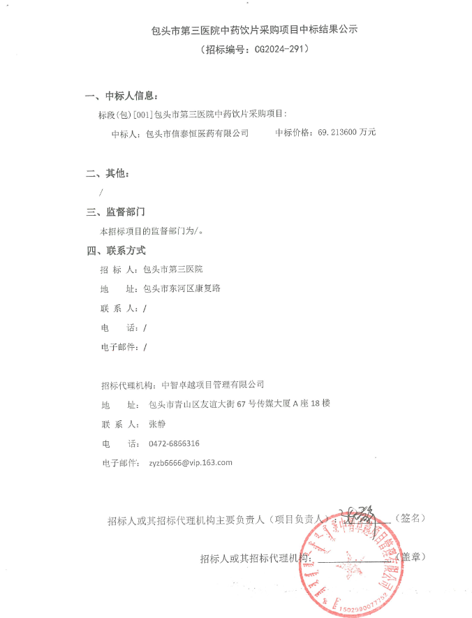 【包头市第三医院】内蒙古自治区包头市第三医院中药饮片采购项目中标结果公示