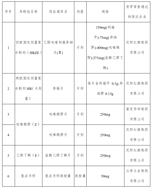 按照《重庆市结核病防治所2025年结核试剂带量采购项目实施方案》《重庆市结核病防治所2025年抗结核药品带量采购项目实施方案》,资质审查结果如下。