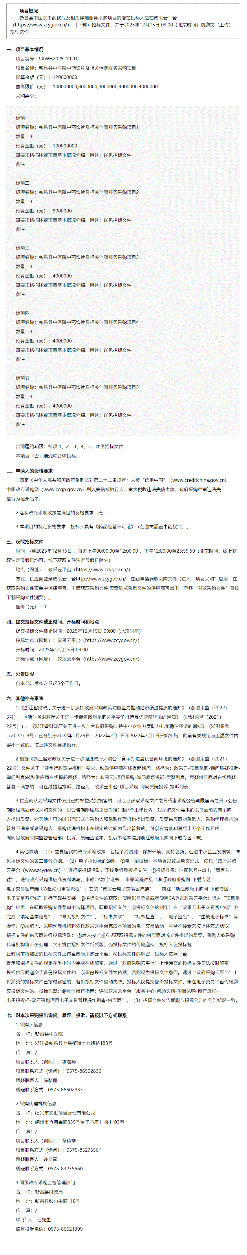 【绍兴市新昌县中医院】浙江省绍兴市文汇项目管理有限公司关于新昌县中医院中药饮片及相关伴随服务采购项目的公开招标公告