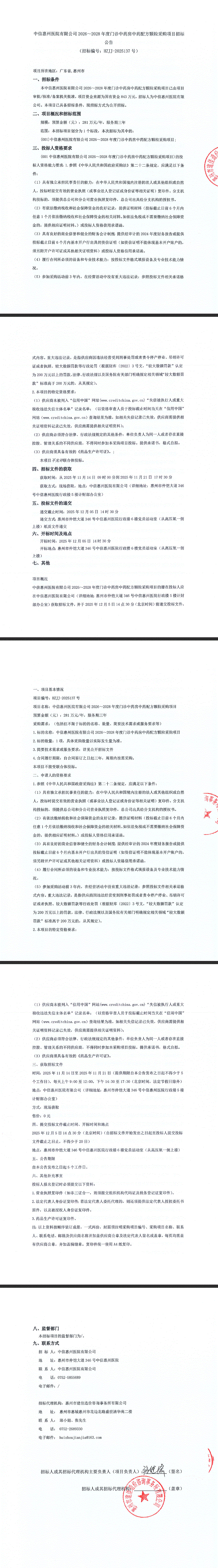 【广东省中信惠州医院】广东省中信惠州医院有限公司2026~2028年度门诊中药房中药配方颗粒采购项目招标公告