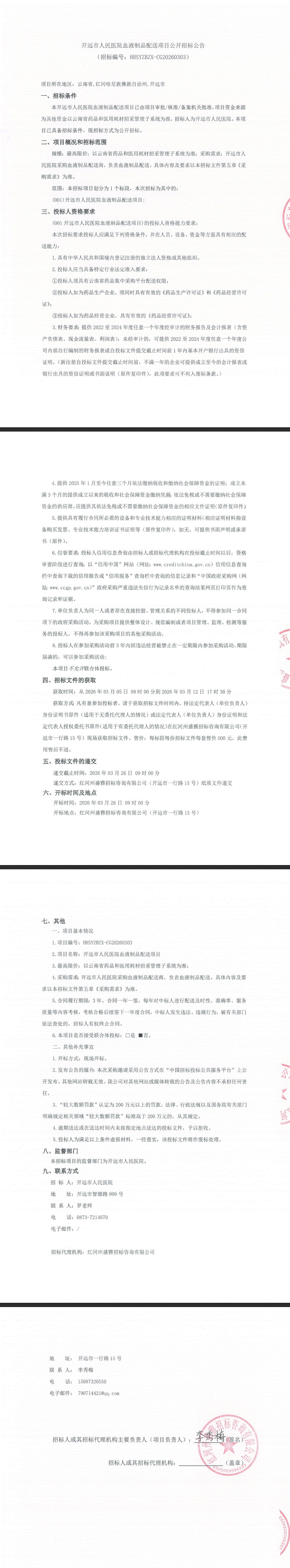 【红河哈尼族彝族自治州开远市人民医院】云南省开远市人民医院血液制品配送项目公开招标公告