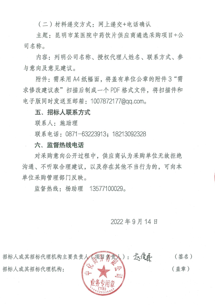 【云南省昆明市某医院】中药饮片供应商遴选采购需求公示项目公告