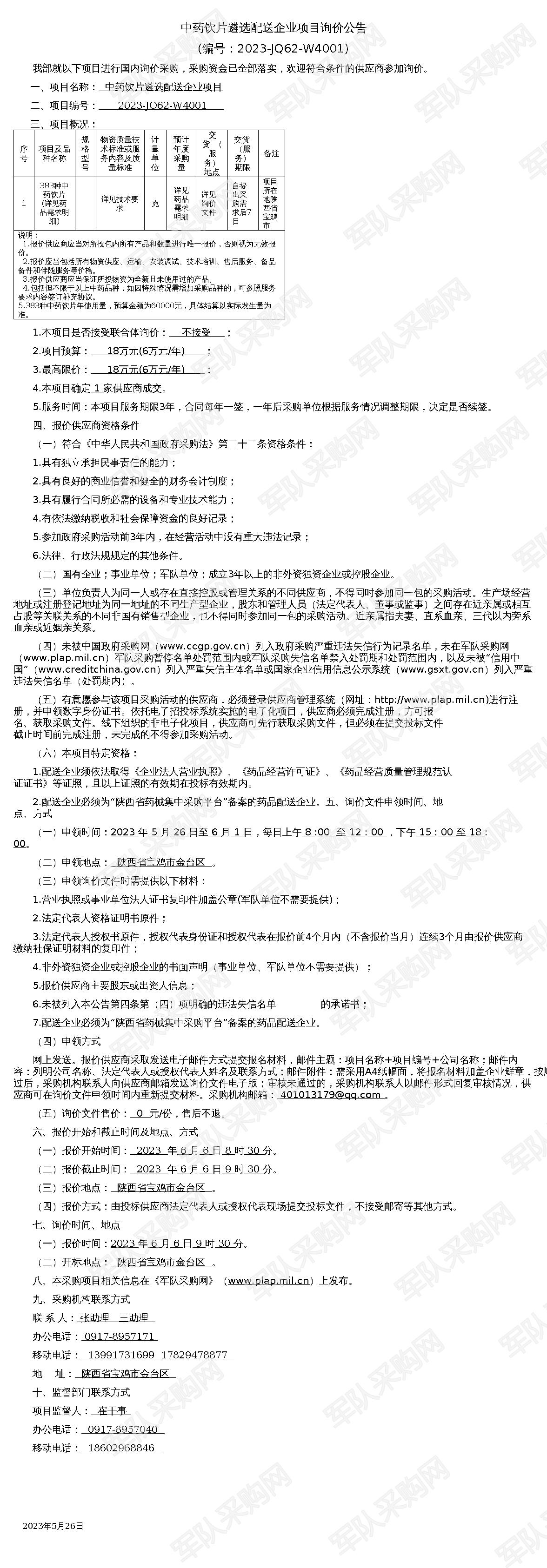 【军队采购】军队采购网中药饮片遴选配送企业项目询价公告(编号:2023-JQ62-W4001)