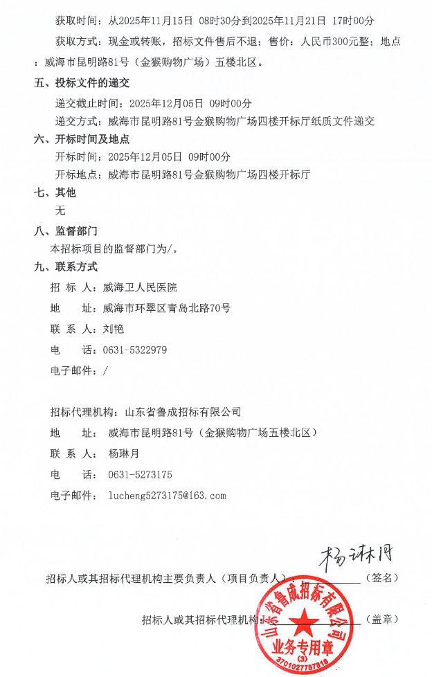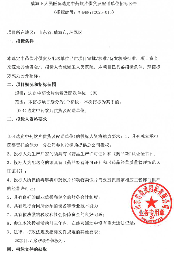 【威海卫人民医院】威海卫人民医院选定中药饮片供货及配送单位招标公告