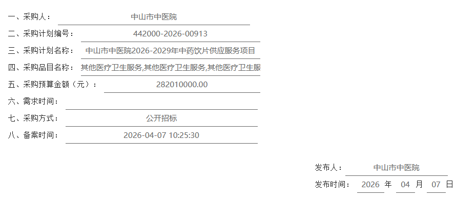 【中山市中医院】广东省中山市中医院2026-2029年中药饮片供应服务项目1