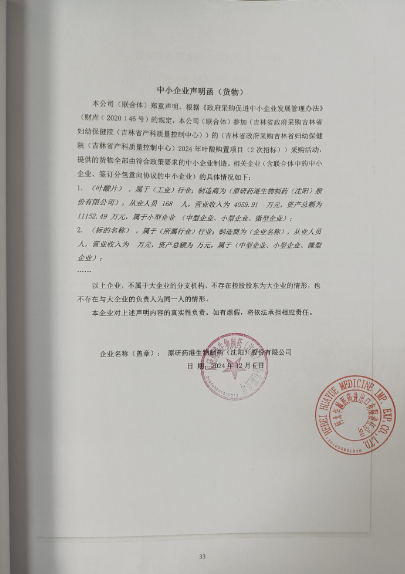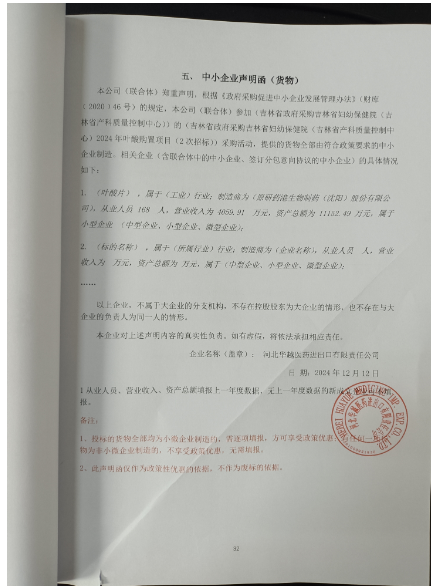 附件:河北华越医药进出口有限责任公司中小企业声明函