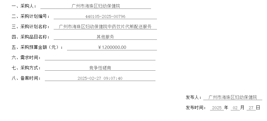 【广州市海珠区妇幼保健院】广东省广州市海珠区妇幼保健院中药饮片代煎配送服务