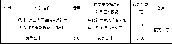 1.项目名称:银川市第三人民医院中药散饮片类院内框架协议采购项目