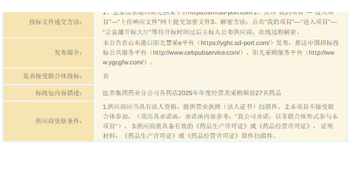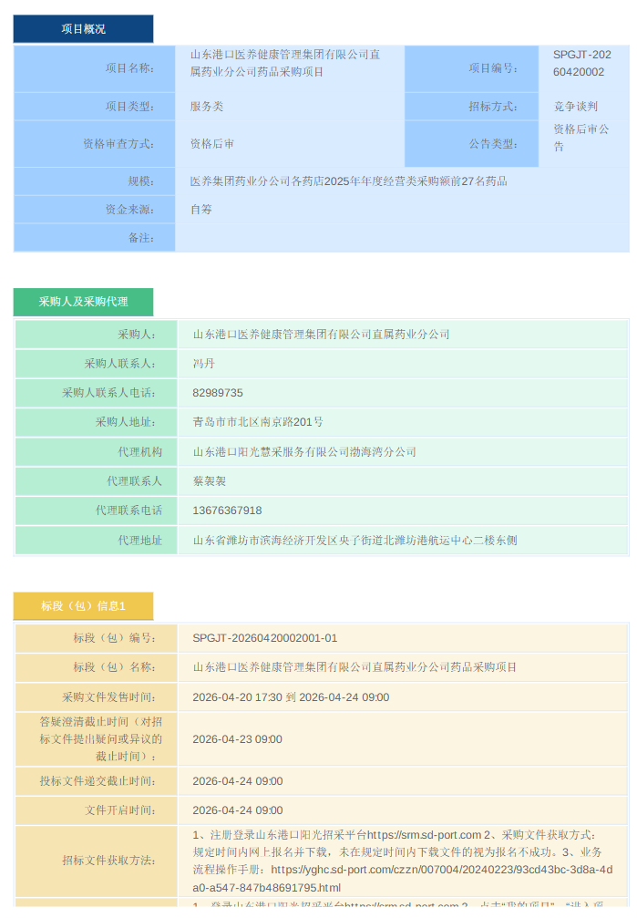 【山东港口医养健康管理集团】山东港口医养健康管理集团有限公司直属药业分公司药品采购项目
