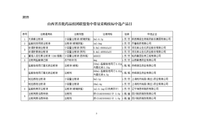 附件:山西省首批药品组团联盟集中带量采购续标中选产品目录