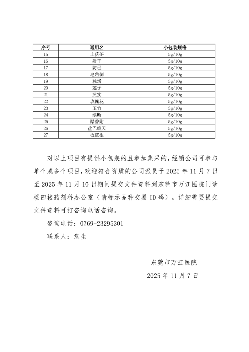 【东莞市万江医院】广东省东莞市万江医院关于第二批全国中药饮片联盟集采相关品种小包装咨询公告