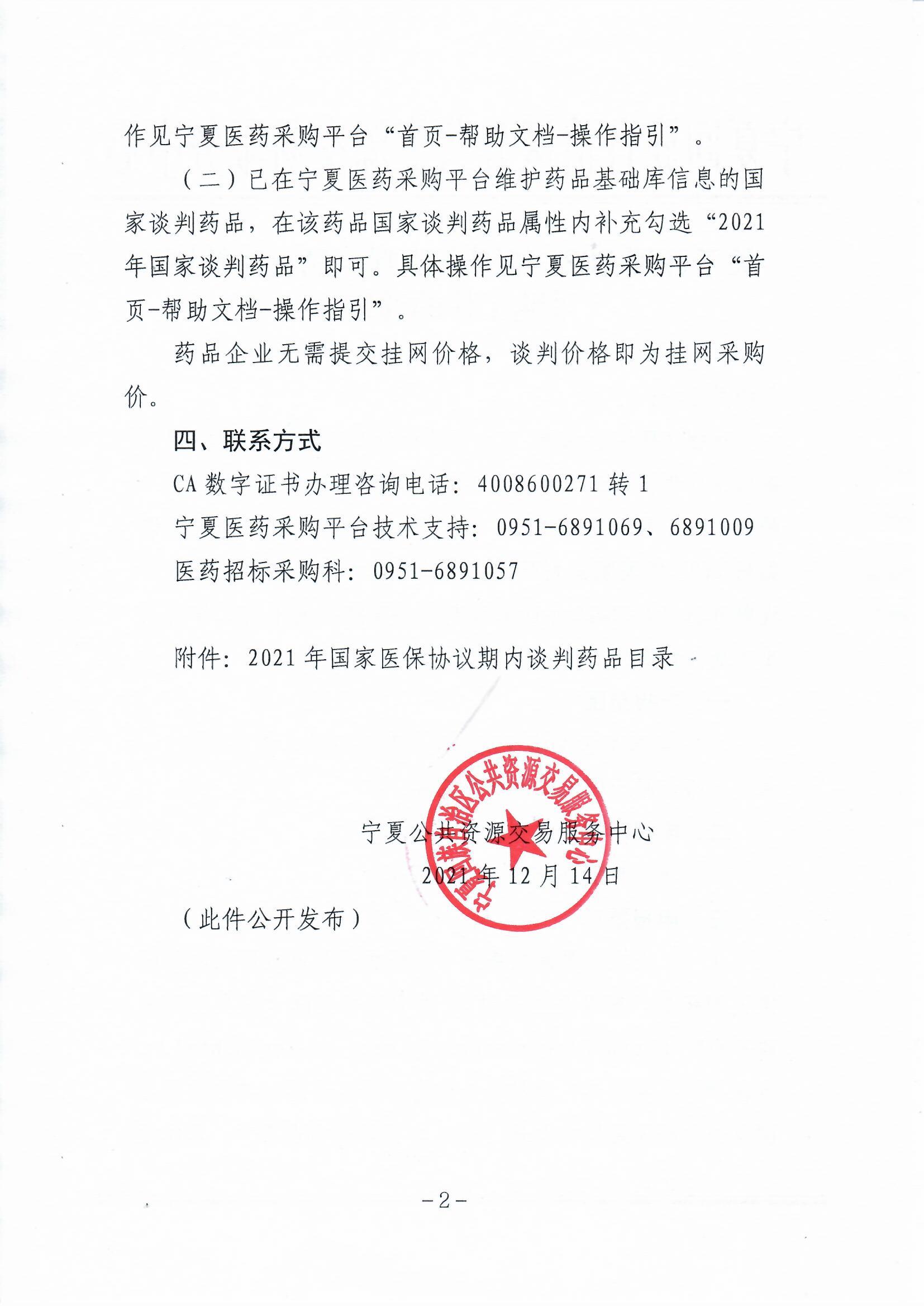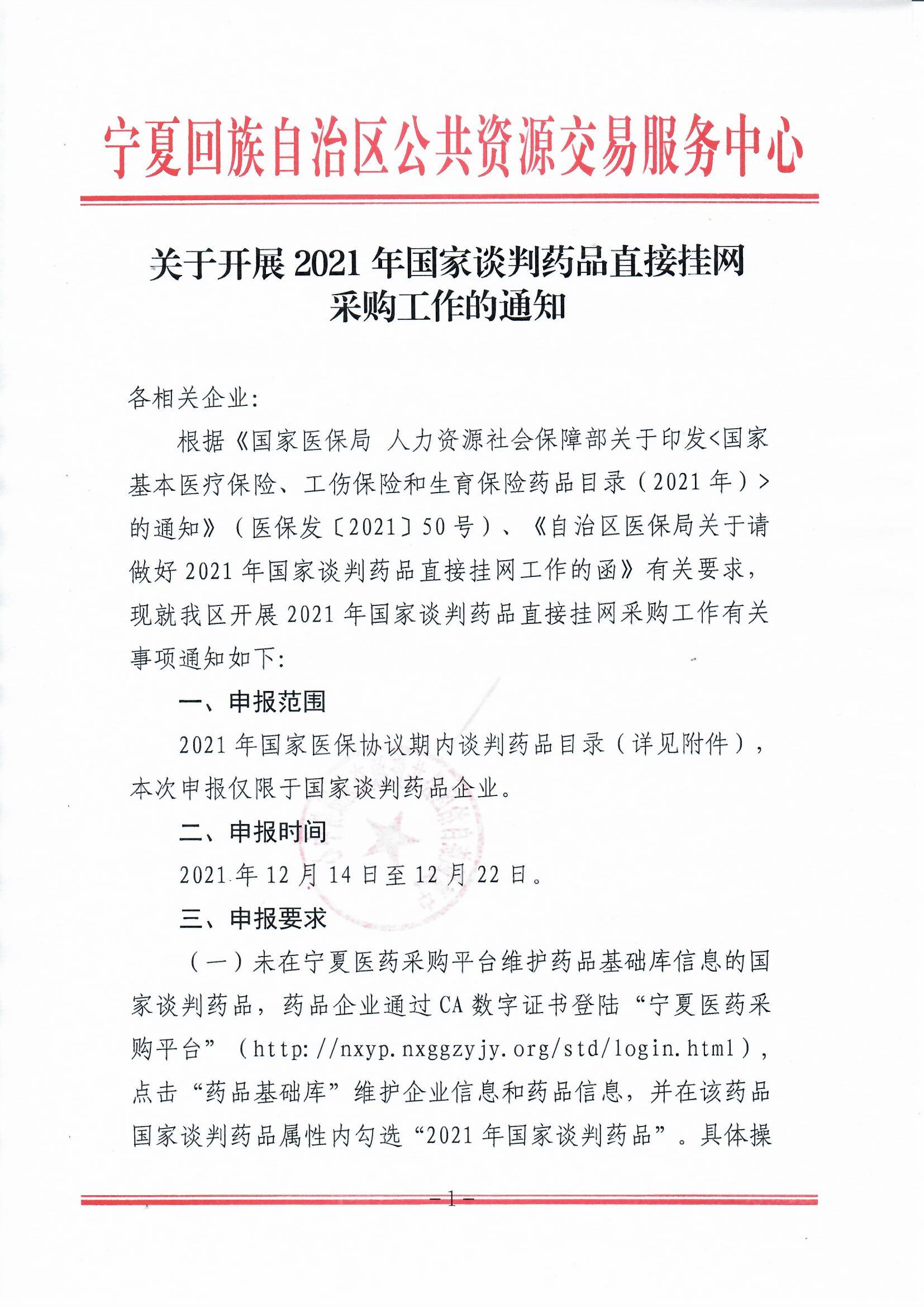 【宁夏】宁夏回族自治区关于开展2021年国家谈判药品直接挂网采购工作的通知