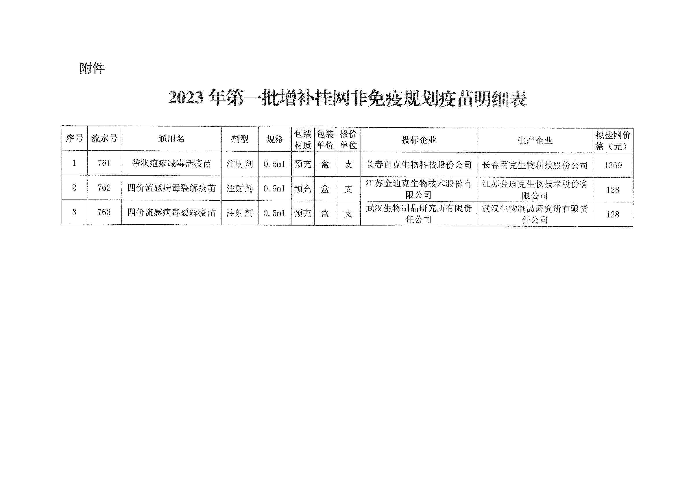 附件:2023年第一批增补挂网非免疫规划疫苗明细表