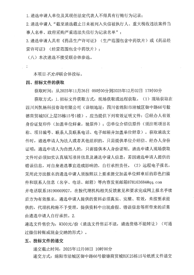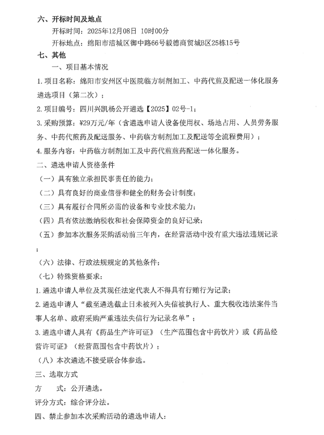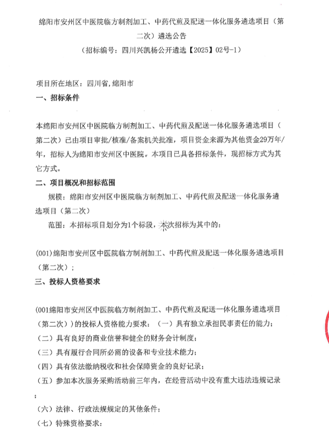 【绵阳市安州区中医院】四川省绵阳市安州区中医院临方制剂加工、中药代煎及配送一体化服务遴选项目(第二次)遴选公告
