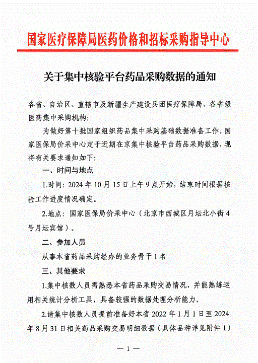 【国家】国家医疗保障局关于集中核验平台药品采购数据的通知